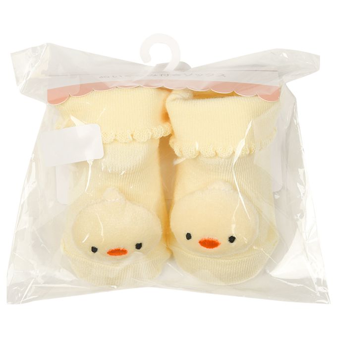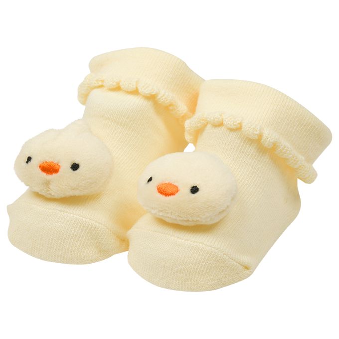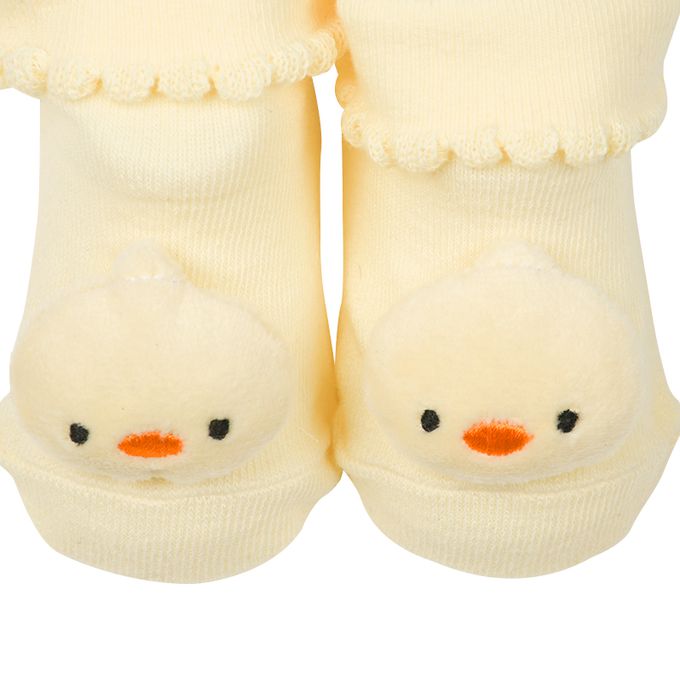 新生兒附絨毛玩偶襪-小雞-奶油色 (7~9cm)