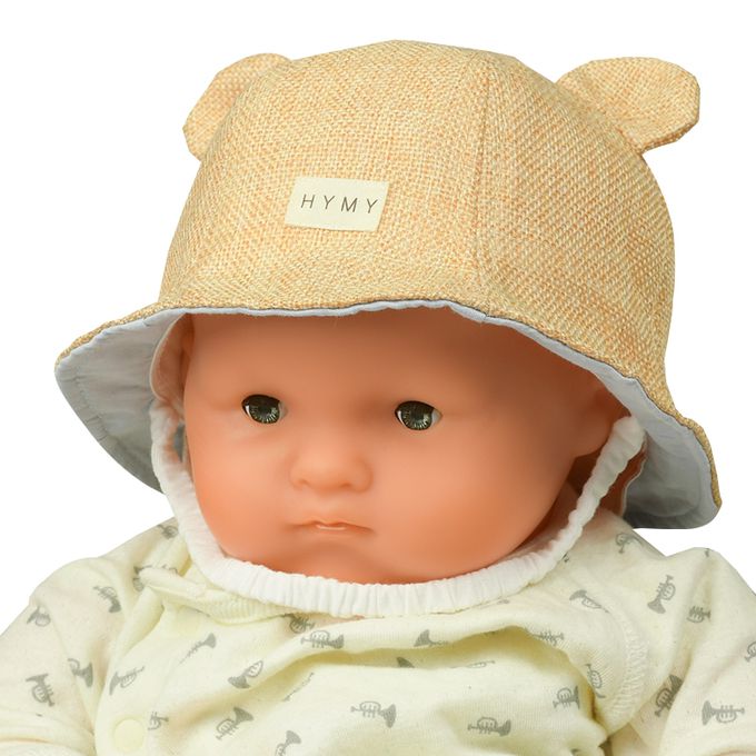 下巴有鬆緊帶可防止被風等吹落。 下巴鬆緊帶用布料裹住,使膚觸更舒適。