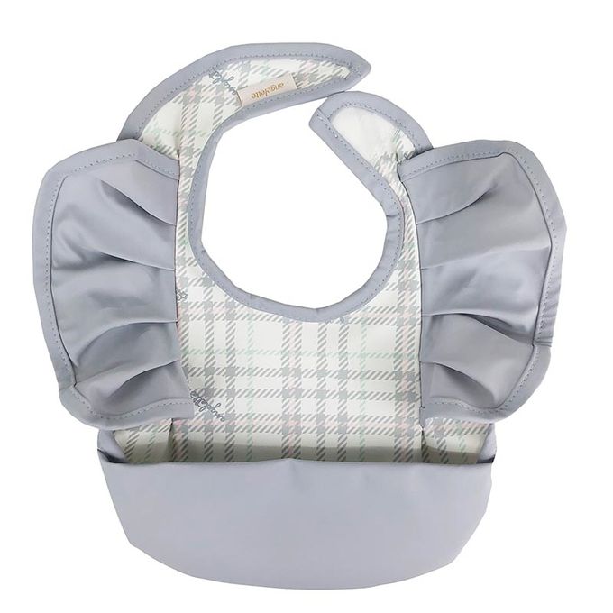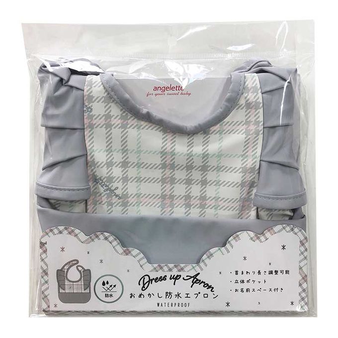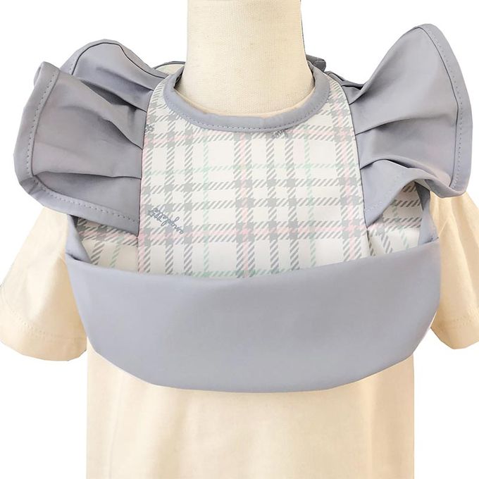 akachan honpo - 時尚防水圍兜-格紋 荷葉邊-灰色 (70~95cm)