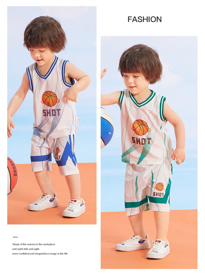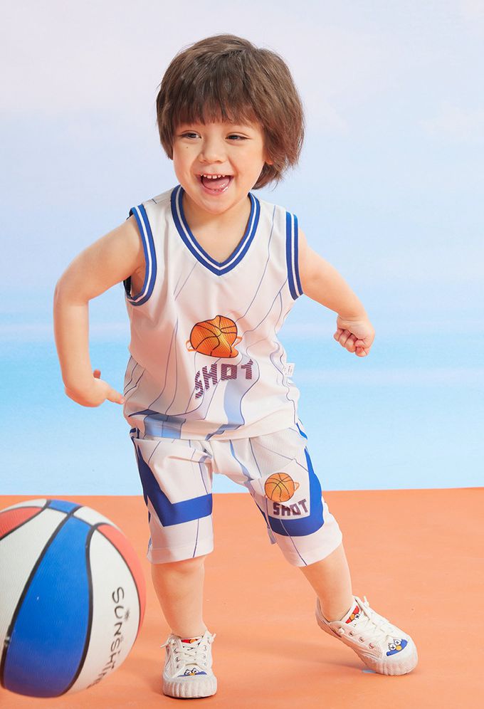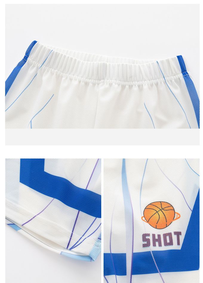 清爽透氣速乾運動套裝(背心+五分褲)-籃球SHOT-藍色