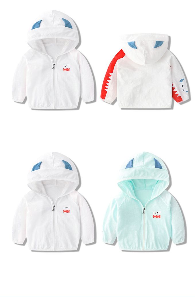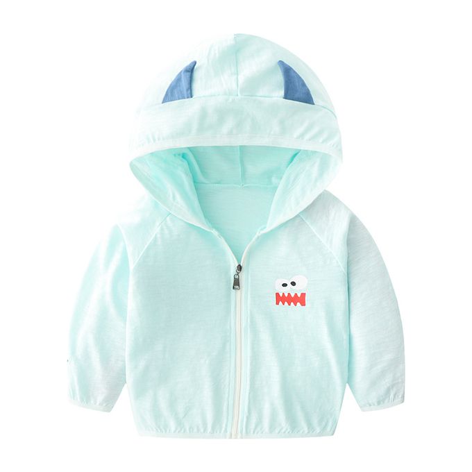 純棉涼感連帽防曬外套/空調外套-可愛小怪獸-藍色
