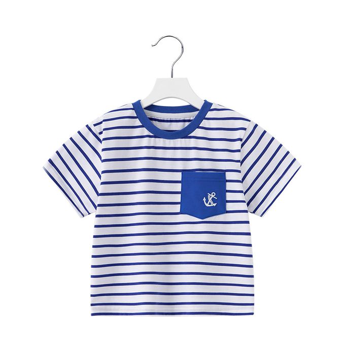 純棉圓領短袖上衣-條紋海軍風-藍色