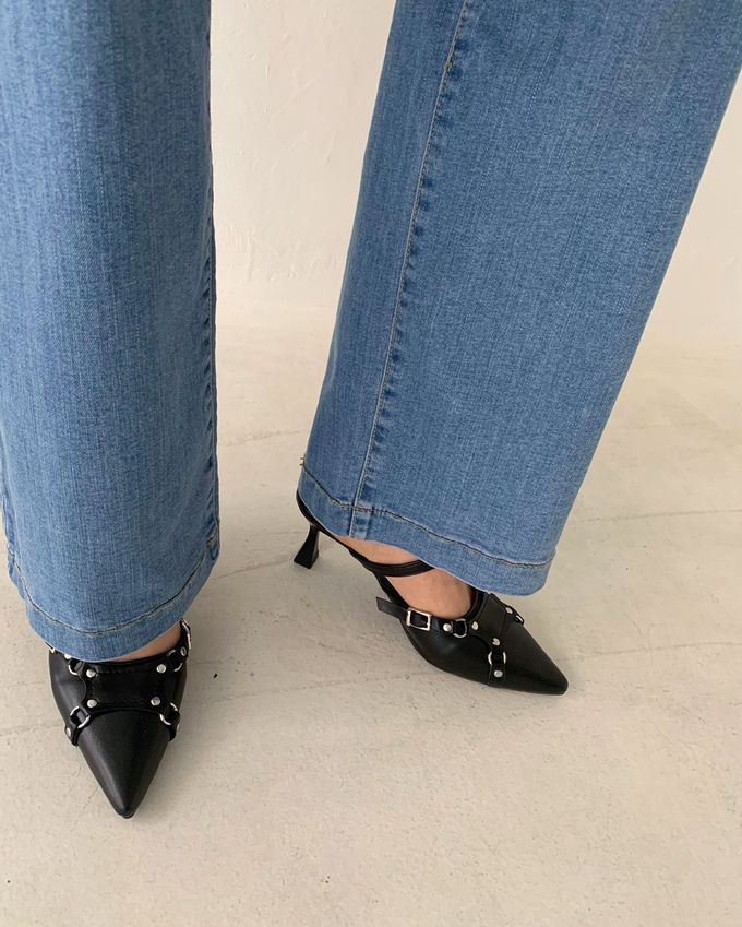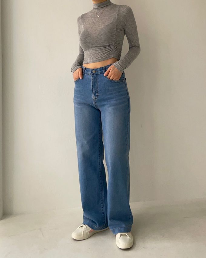✧ 彈性腰一字牛仔落地褲