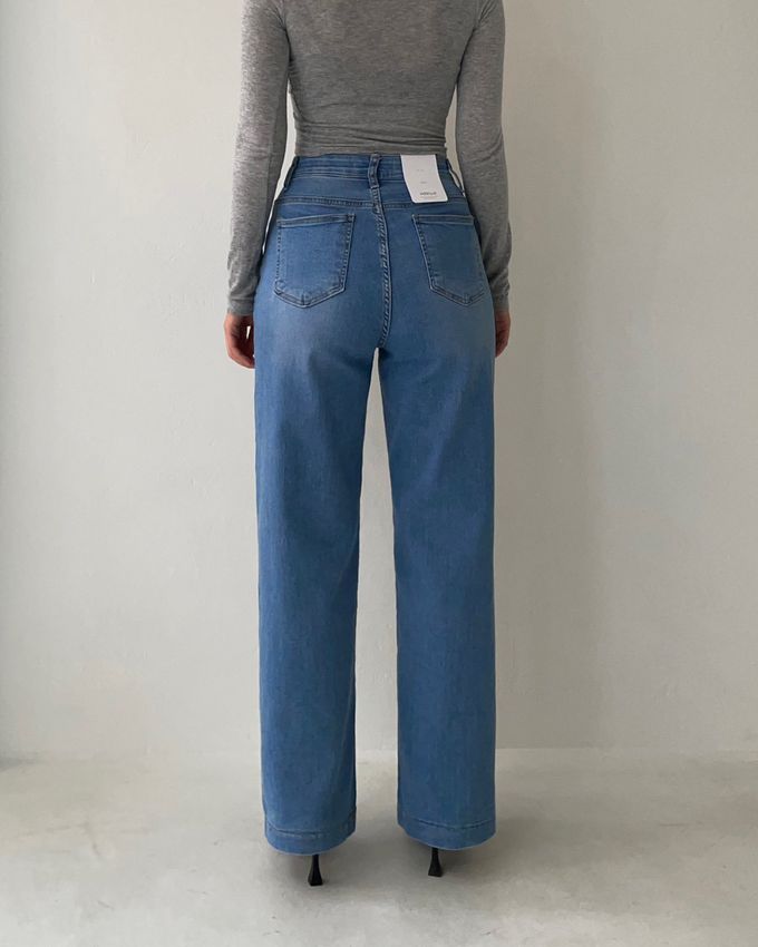 • 品名:彈性腰一字牛仔落地褲