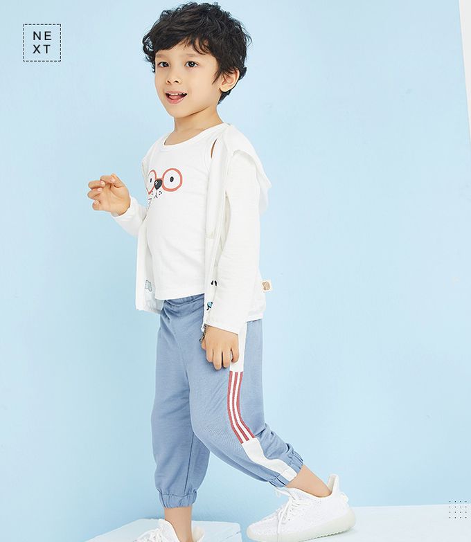 NC - 冰絲涼感束口長褲/空調褲/防蚊褲-側拼白條-藍色