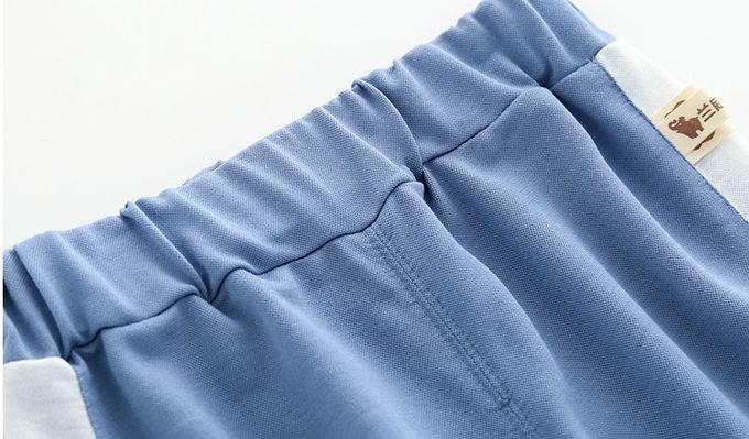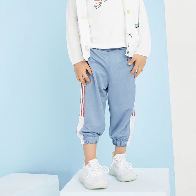 冰絲涼感束口長褲/空調褲/防蚊褲-側拼白條-藍色