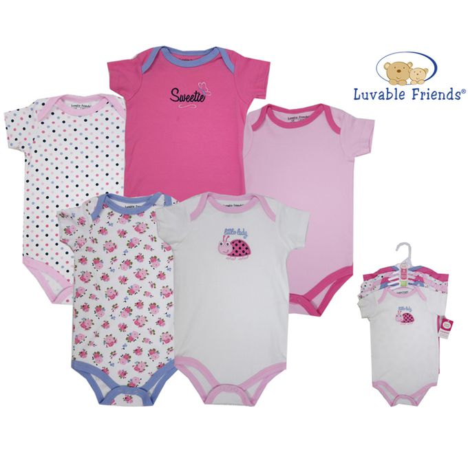 美國 Luvable Friends - 甜蜜寶貝100%純棉嬰幼兒短袖包屁衣5件組-瓢蟲&花 (9-12M)