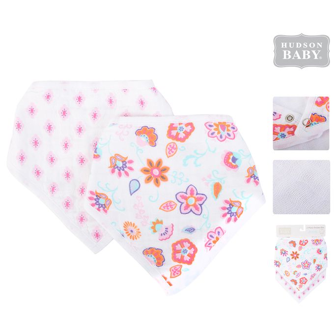 甜蜜寶貝100%純棉嬰幼兒三角領巾/口水巾圍兜2入組-花漾年華