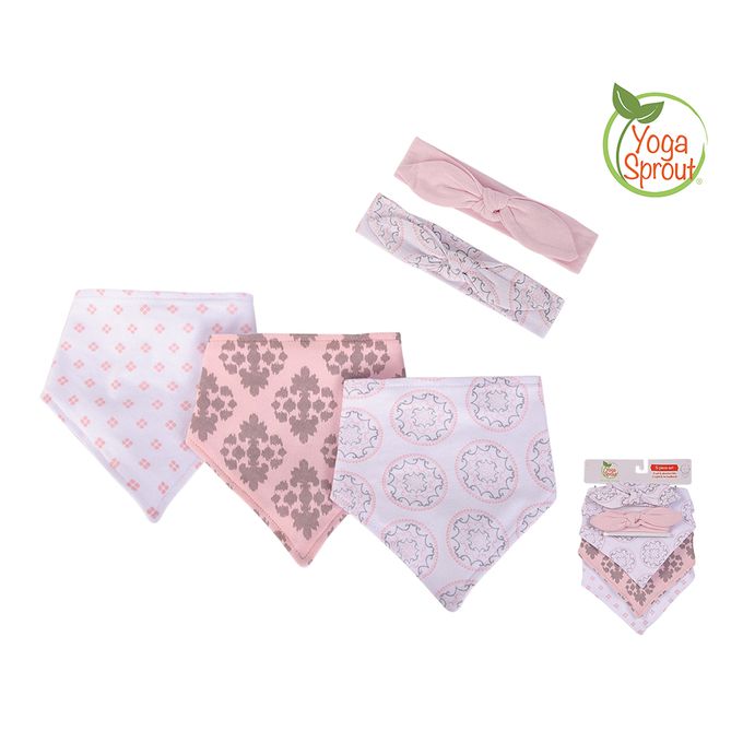 甜蜜寶貝100%純棉三角領巾3入組+髮帶2入套裝組-粉橘圖騰