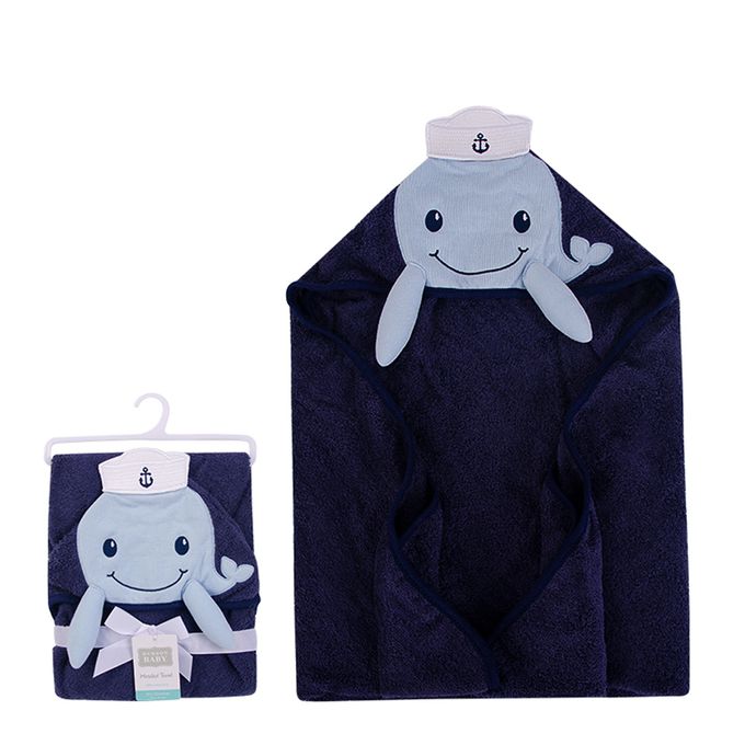 甜蜜寶貝100% 純棉嬰幼兒動物造型連帽浴巾/包巾-藍色鯨魚