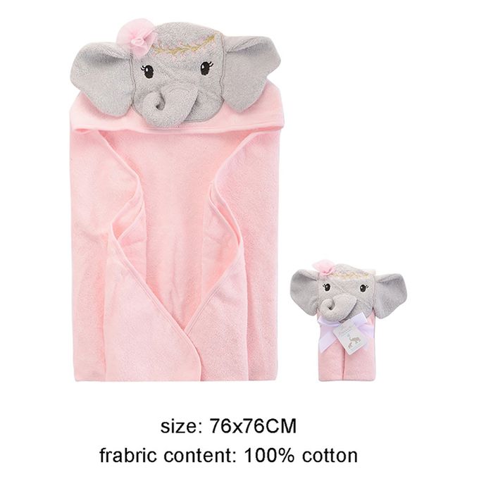 甜蜜寶貝100% 純棉嬰幼兒動物造型連帽浴巾/包巾-小粉象