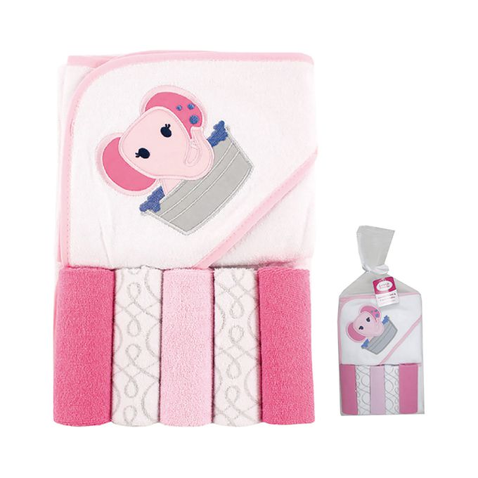 甜蜜寶貝嬰幼兒毛圈包被+5入組方巾-洗澡大象