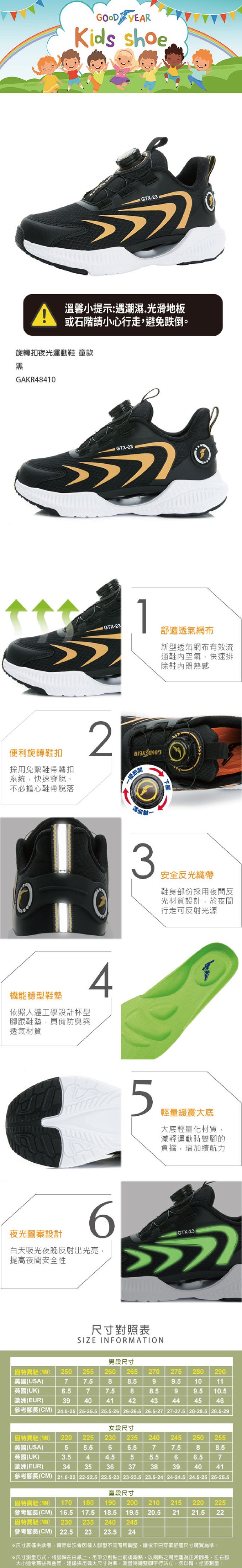 固特異 暗夜先鋒 童鞋 旋轉扣夜光運動鞋 GAKR48410-緩震大底-黑-22~24.5cm