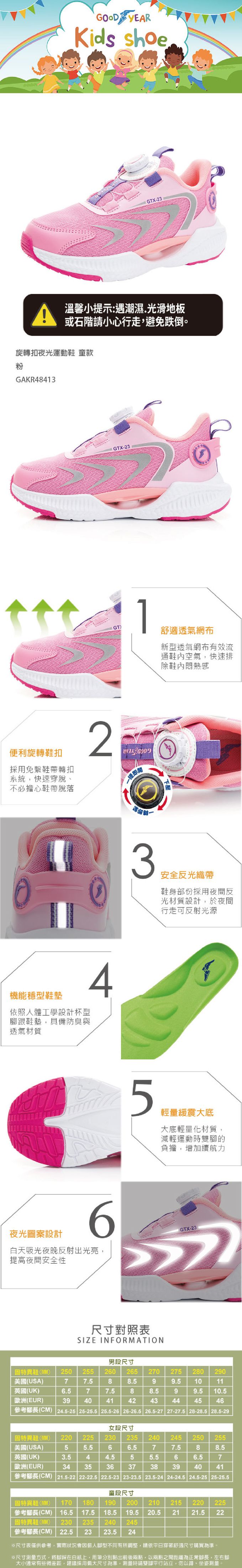 固特異 暗夜先鋒 童鞋 旋轉扣夜光運動鞋 GAKR48413-緩震大底-粉-22~24.5cm