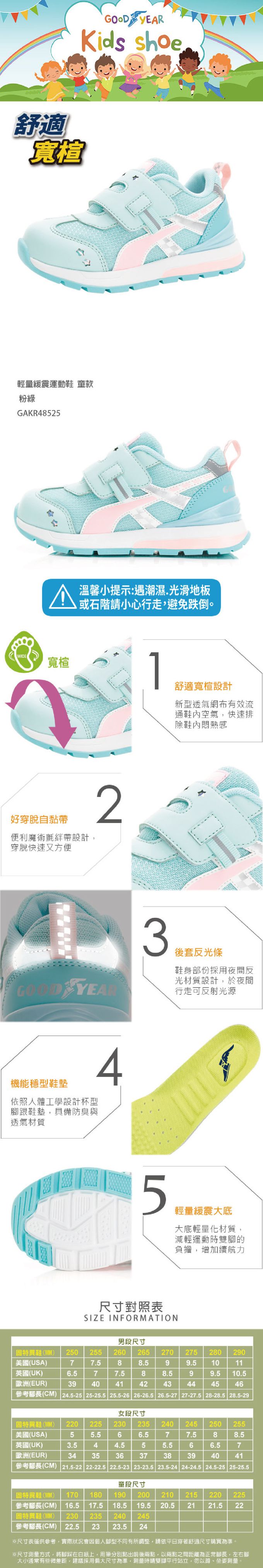 固特異 極速潮跑 童鞋 緩震運動鞋 GAKR48525-緩震大底-粉綠-18~22cm
