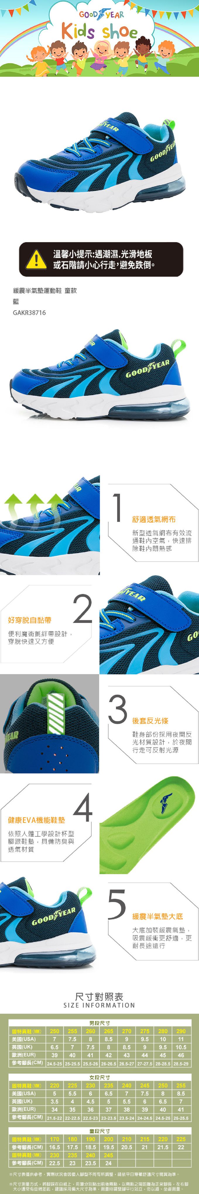 GOODYEAR - 固特異 氣躍速跑 童鞋 半氣墊緩震運動鞋 GAKR38716-緩震大底-藍-21~24.5cm