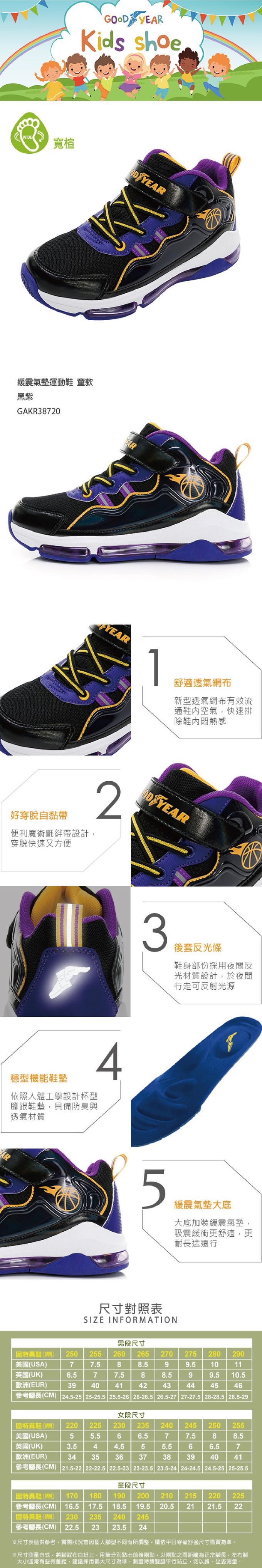 固特異 雷幻戰神III 童鞋 緩震氣墊運動鞋 GAKR38720-緩震氣墊-黑紫-22~25cm