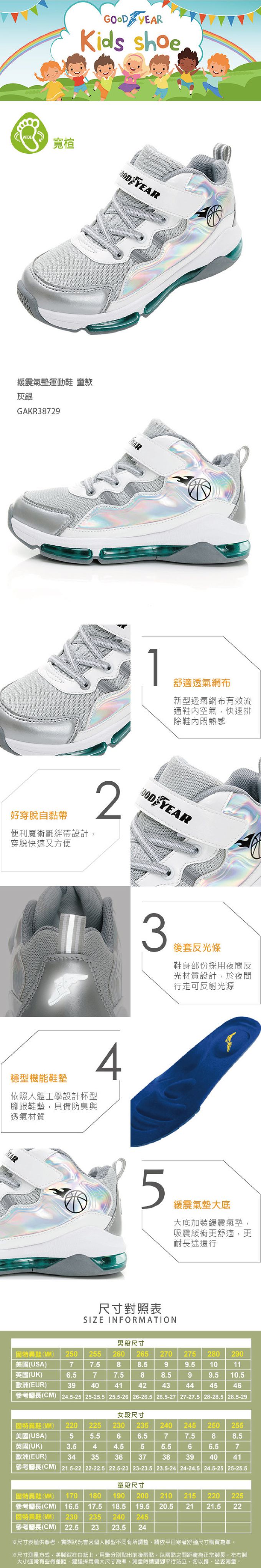 固特異 雷幻戰神III 童鞋 緩震氣墊運動鞋 GAKR38729-緩震氣墊-灰銀-22~25cm