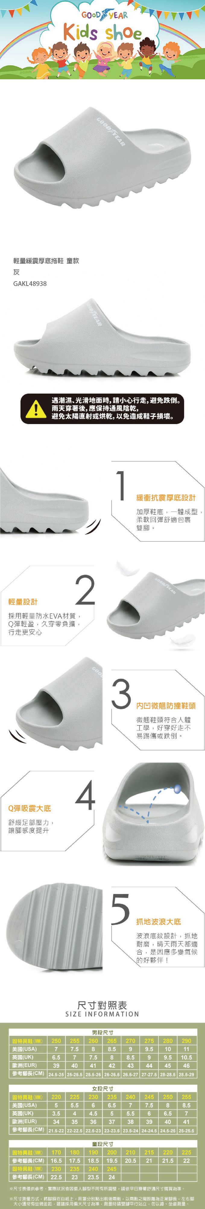 固特異 萌趣一夏 童鞋 輕量緩震厚拖鞋 GAKL48938-輕量防水-灰-19~23cm