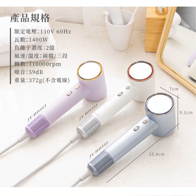 極速11萬轉負離子溫控吹風機-白/藍/紫