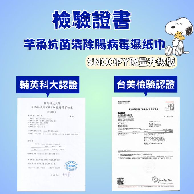 品名:芊柔抗菌清除腸病毒濕紙巾(SNOOPY限量版)80抽