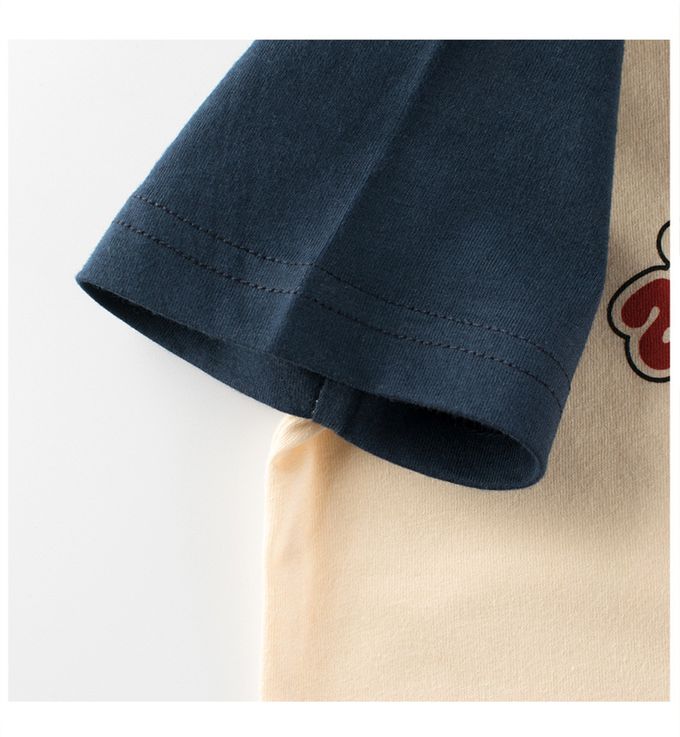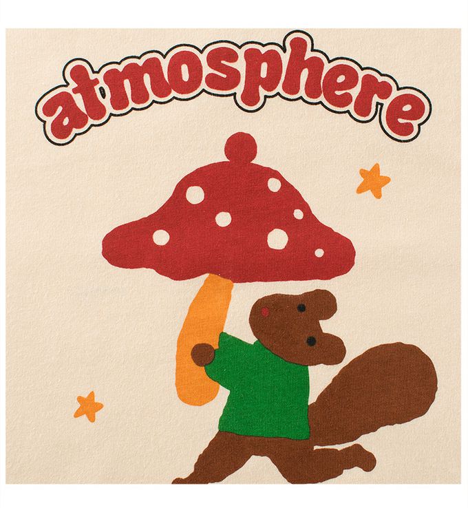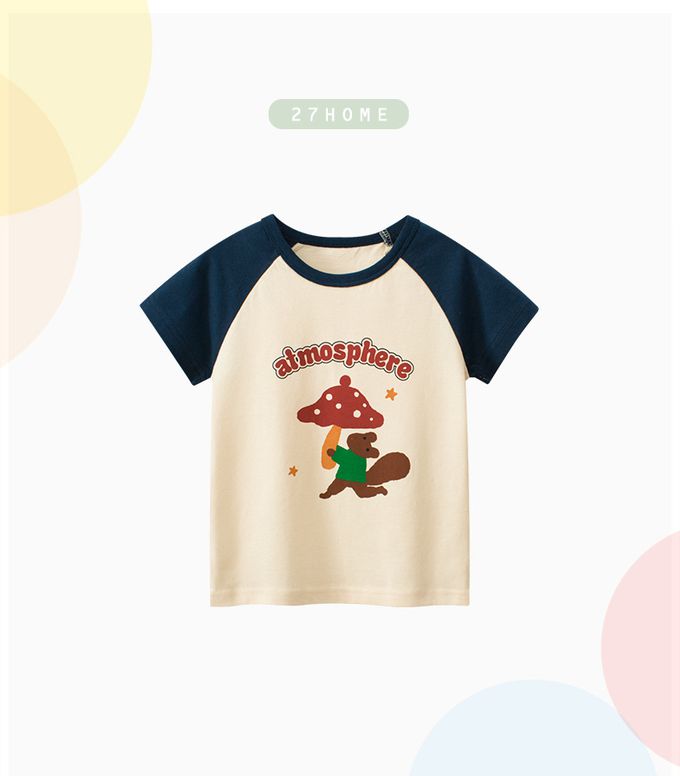 純棉短袖上衣-松鼠蘑菇-米杏+藍