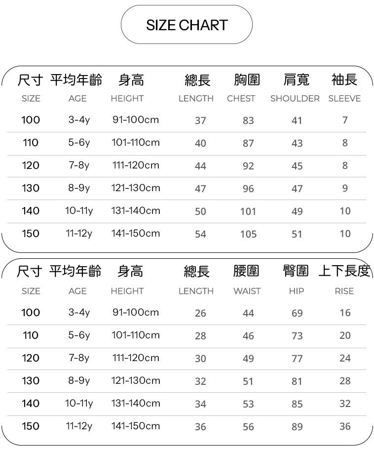 尺寸從90-150公分都有,大小孩和小寶貝都可以穿!