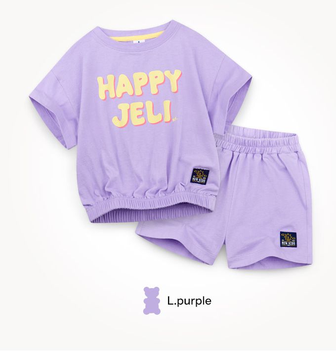 韓國 Jelispoon - HAPPY JELI短袖短褲套裝-紫