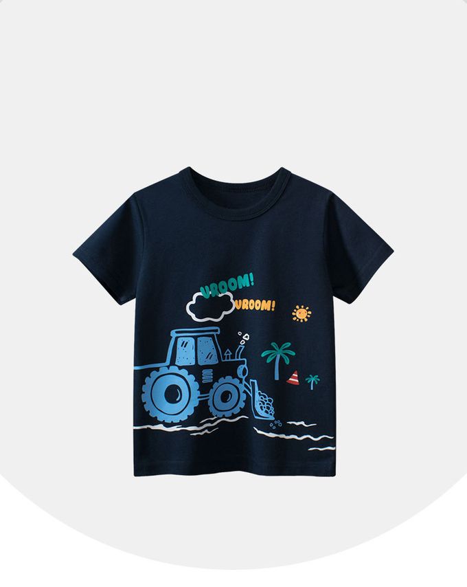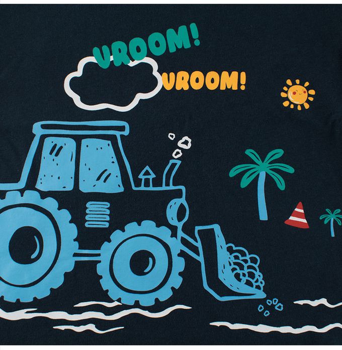 27KIDS - 純棉短袖上衣-藍色笑笑獅-灰綠色