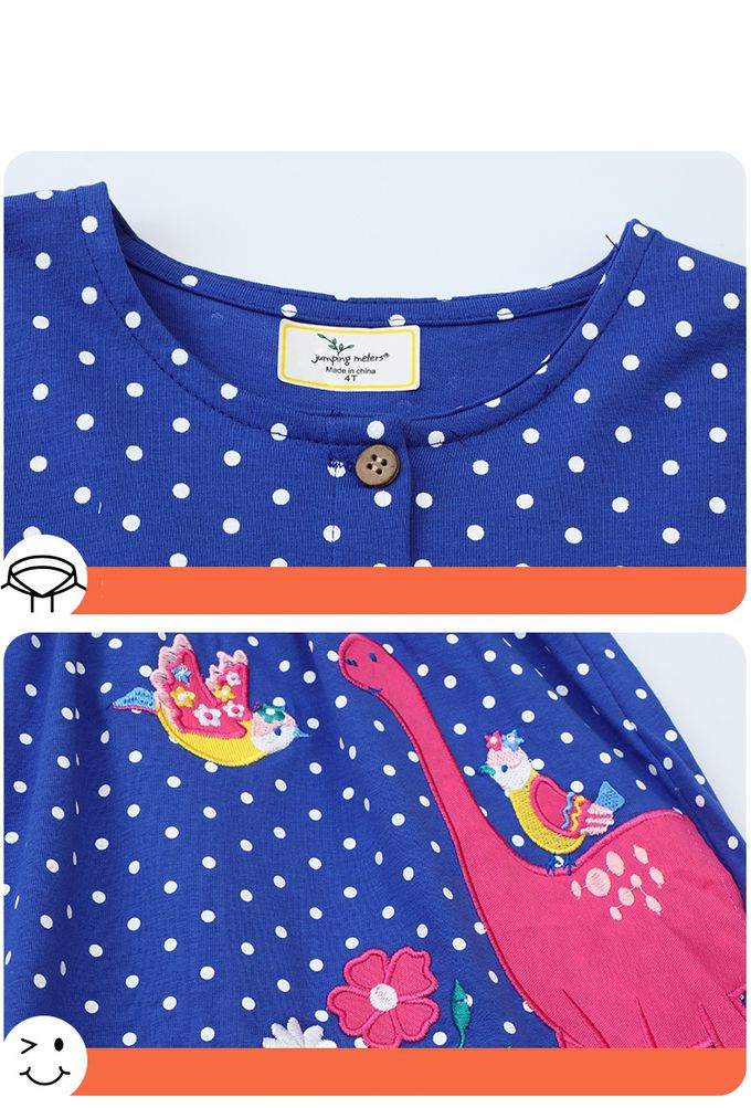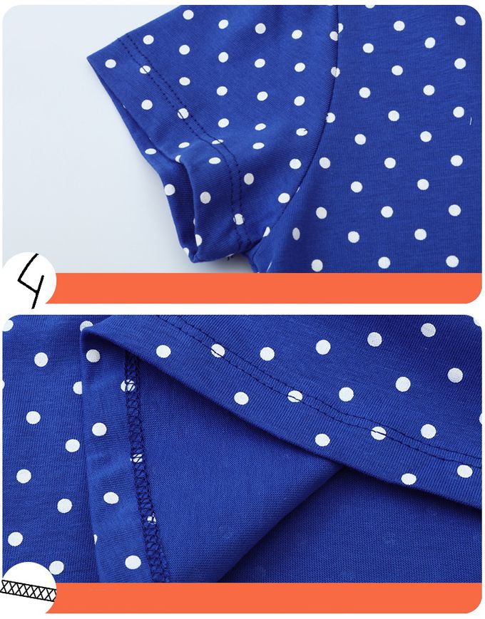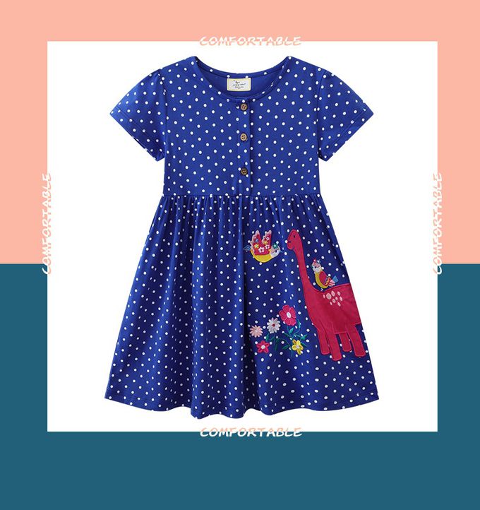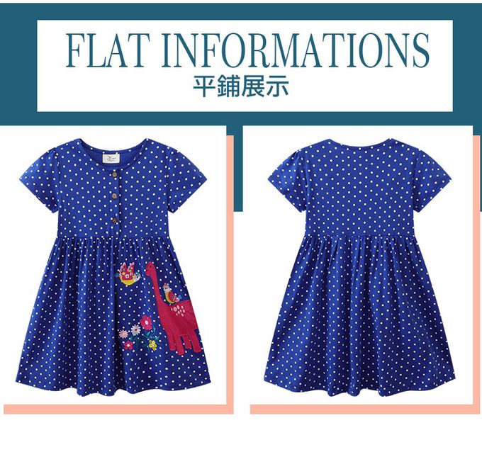 棉質圓領短袖洋裝-恐龍花朵-藍色點點