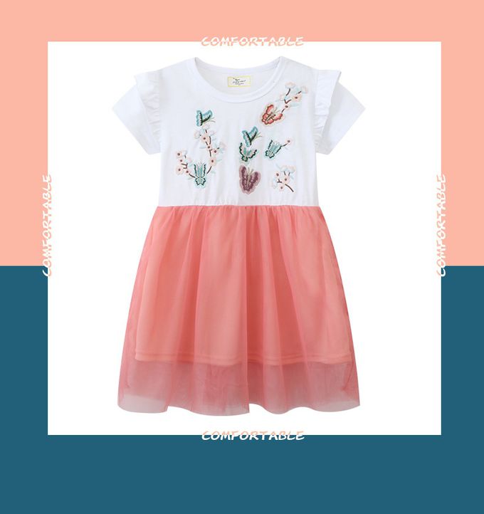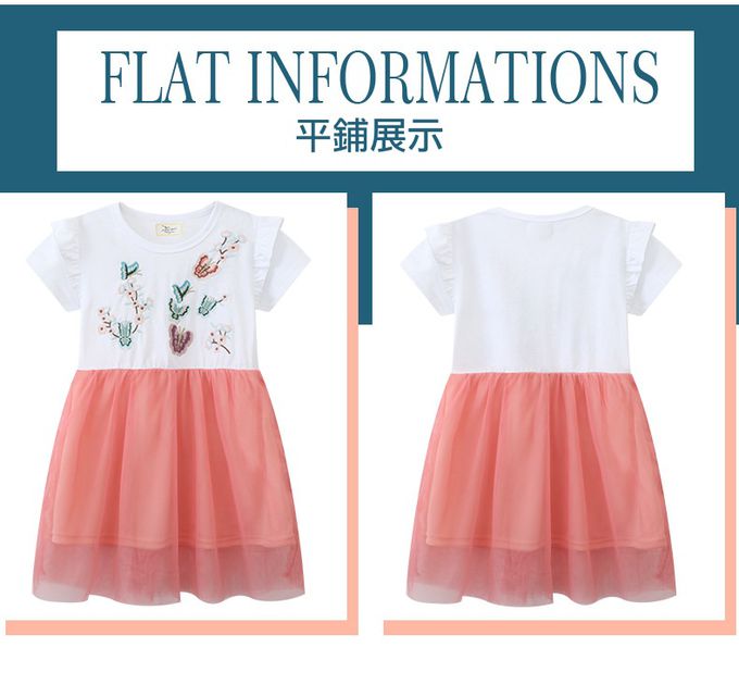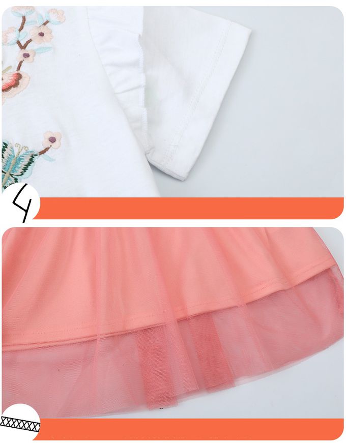 棉質圓領荷葉邊短袖洋裝-蝴蝶花園-白+橘粉