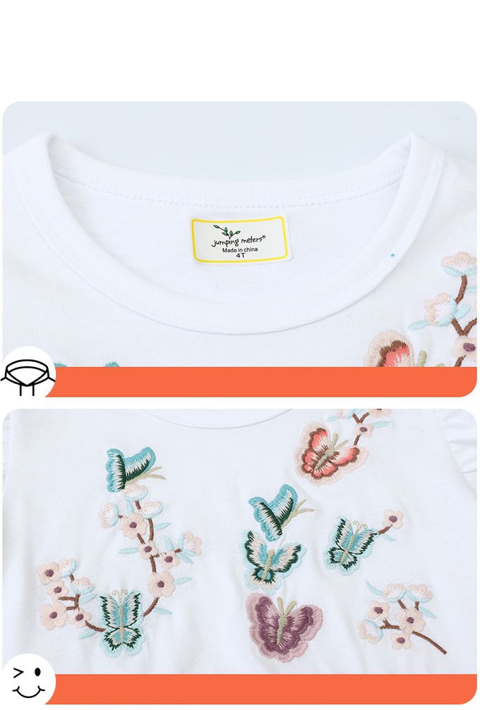 Jumping meters - 棉質圓領荷葉邊短袖洋裝-蝴蝶結獨角獸-白色
