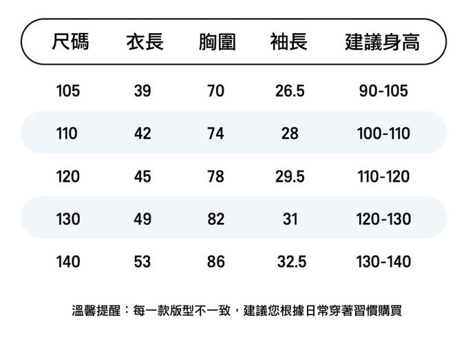 105cm、110cm、120cm、130cm、140cm