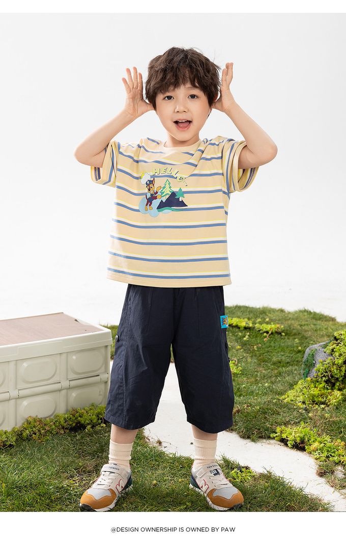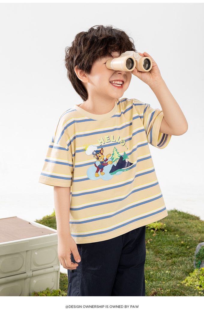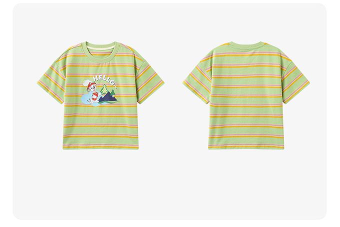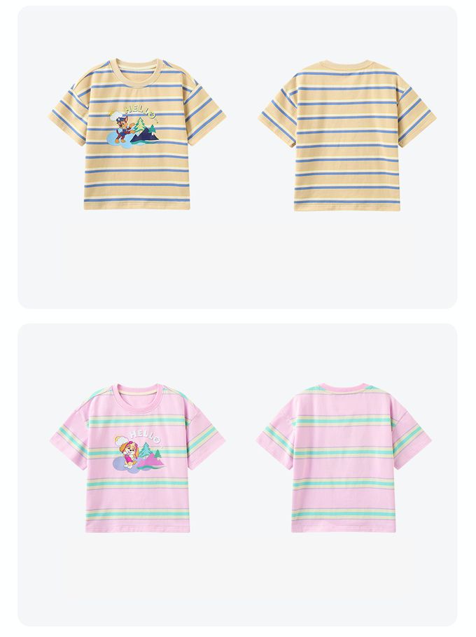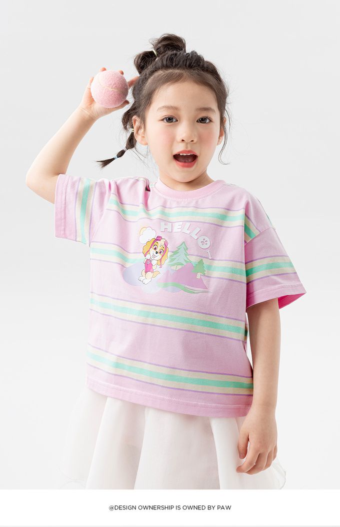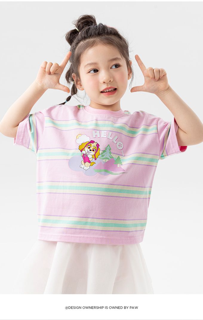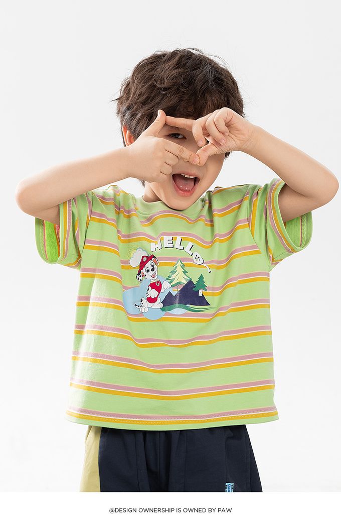 卡通汪汪隊短袖上衣-卡通人物毛毛-綠色條紋