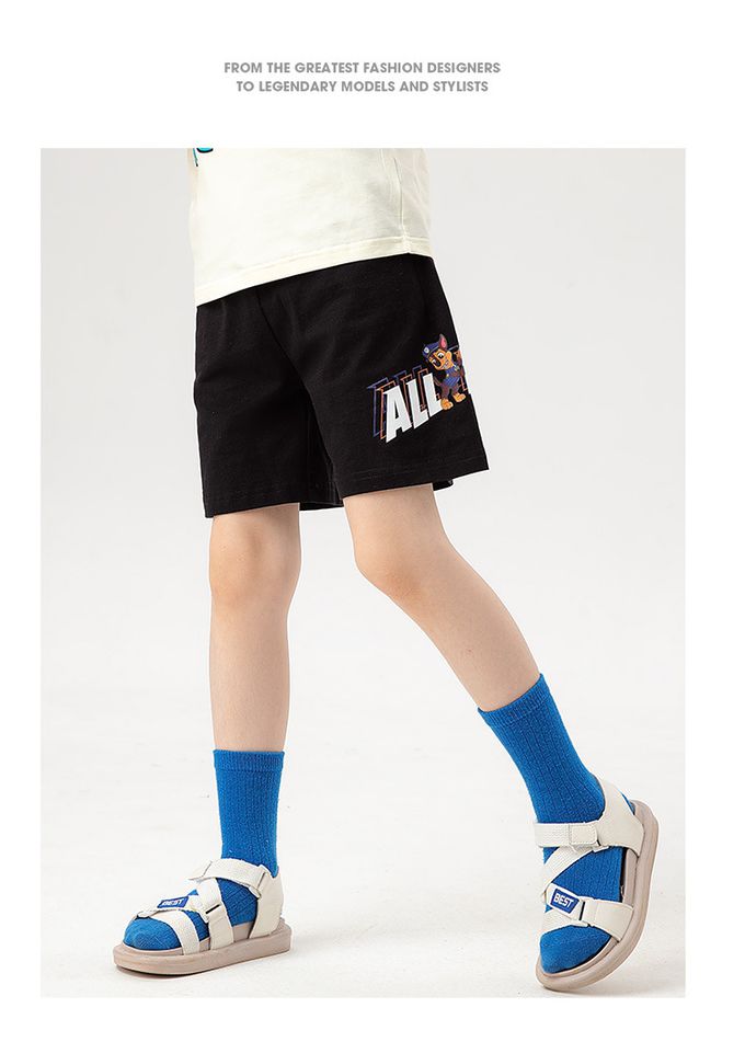 卡通汪汪隊純棉休閒短褲-卡通人物阿奇-黑色