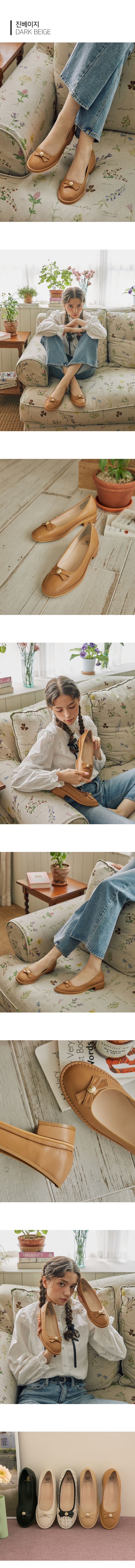 韓國 PINKELEPHANT - 金屬釦蝴蝶結矮跟娃娃鞋(4cm)