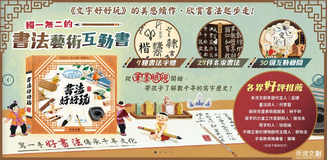 現代的人們以螢幕為紙、鍵盤作筆。還記得以前上小學時,許多教育體系會將書法納入課程中:了解文化傳承、培養孩子專注力和耐心、手眼協調、藝術表達、文字理解⋯⋯等等。不過現在孩子也能透過一本書來領略書法的美感!