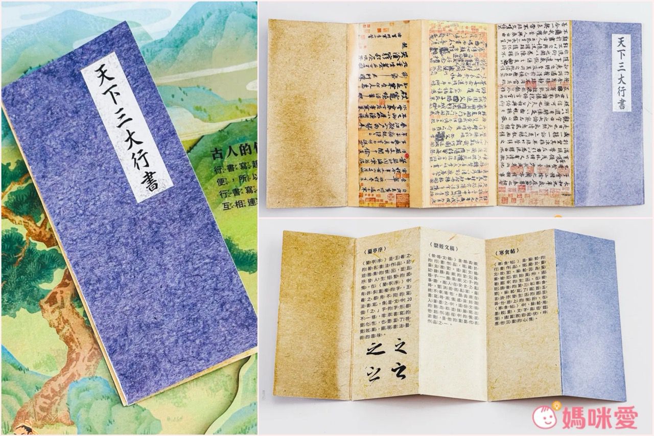 右上角還有一本『天下三大行書』現今傳世的行書作品中,有三件作品具有極高的藝術價值和歷史地位,分別是〈蘭亭序〉〈祭姪文稿〉〈寒食帖〉。