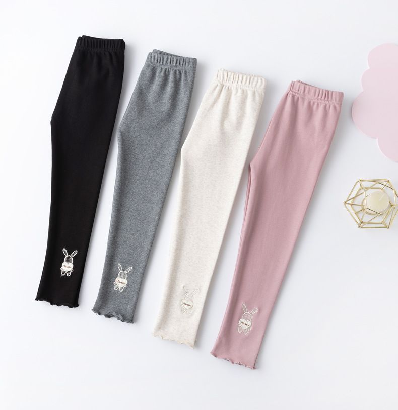 彈力木耳邊內搭褲-時尚兔子-黑色