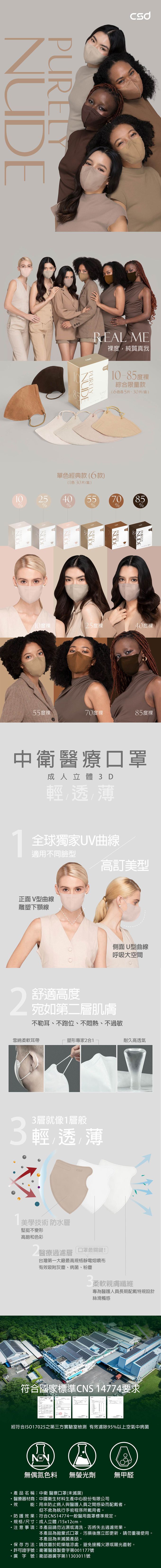 CSD中衛 - 醫療口罩 成人立體 3D Purely Nude(30片/盒)