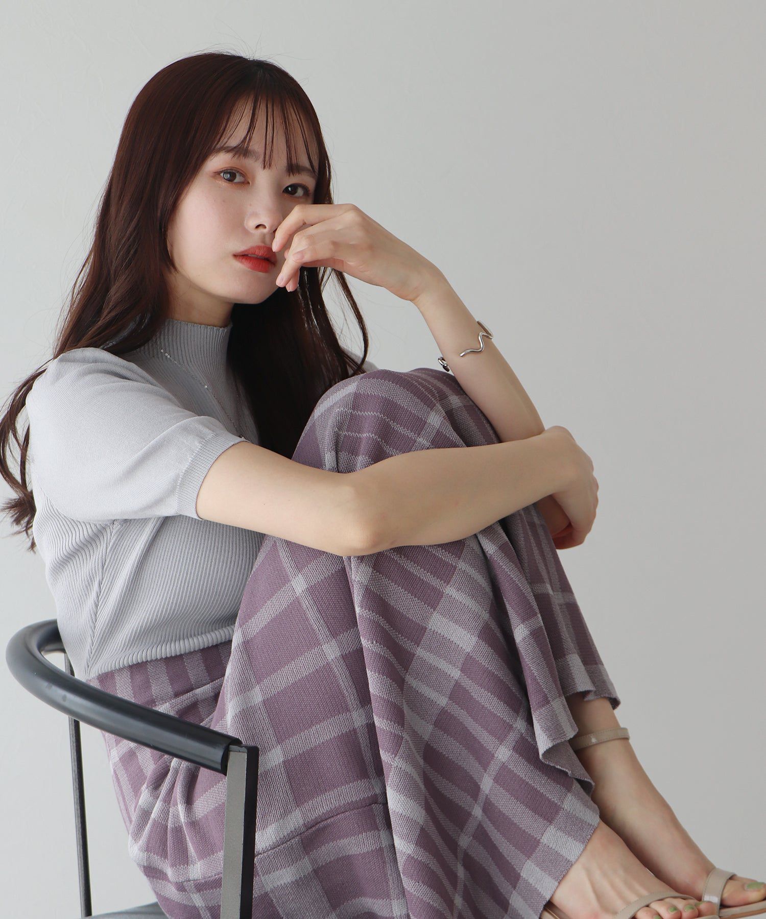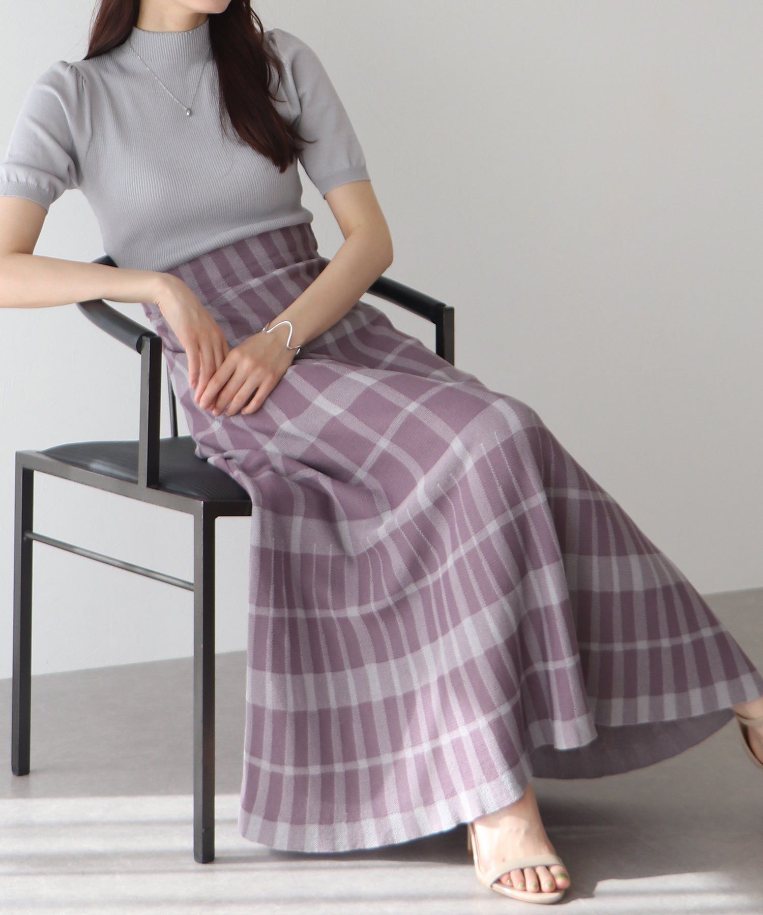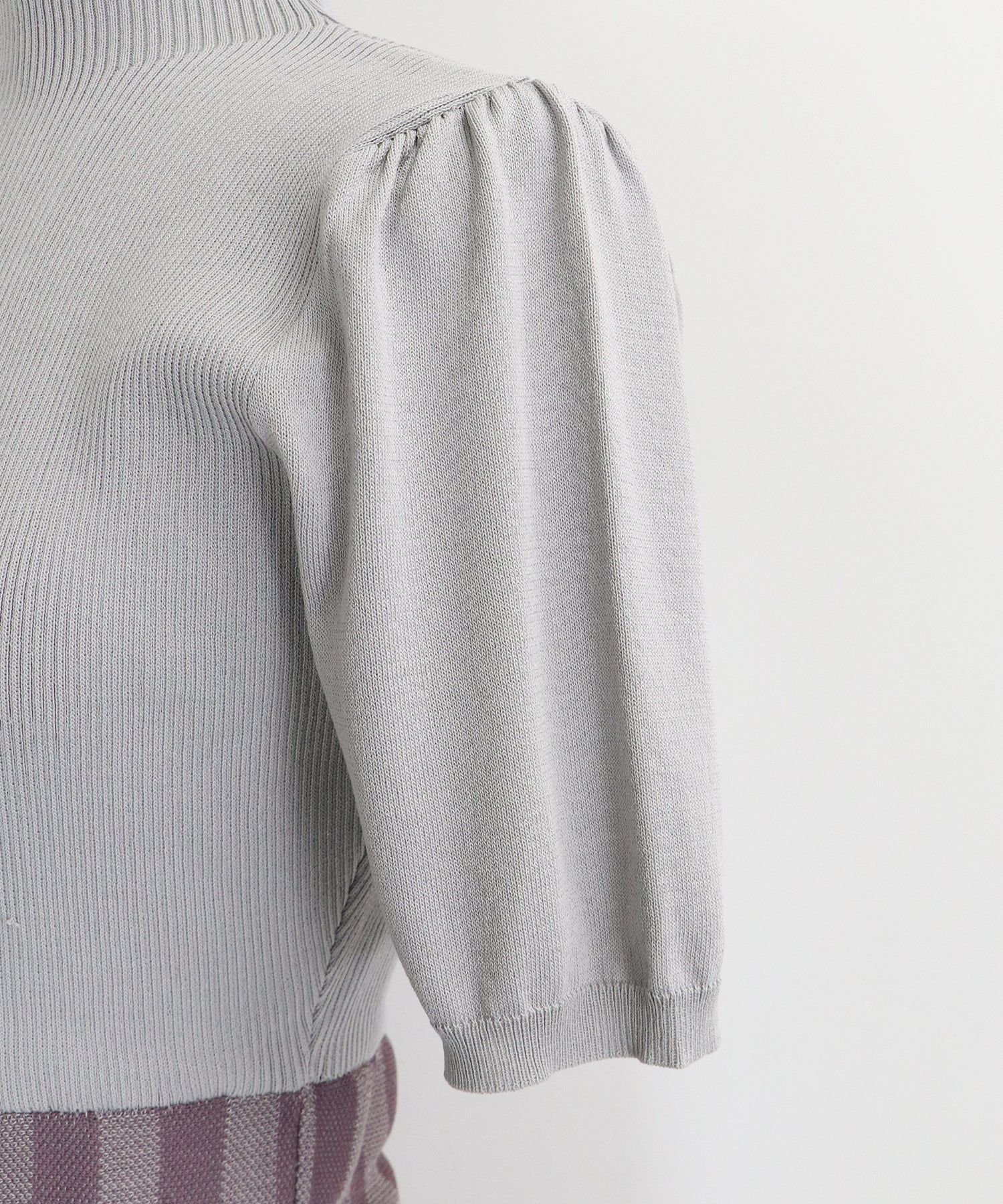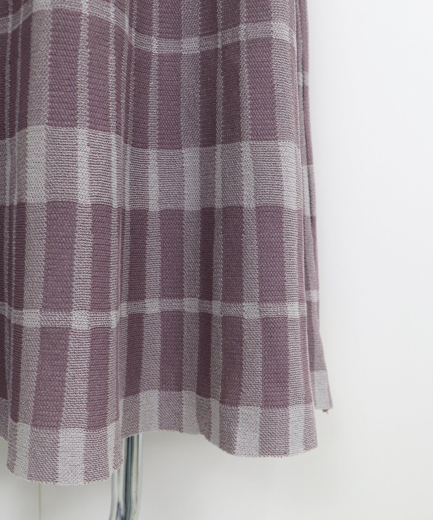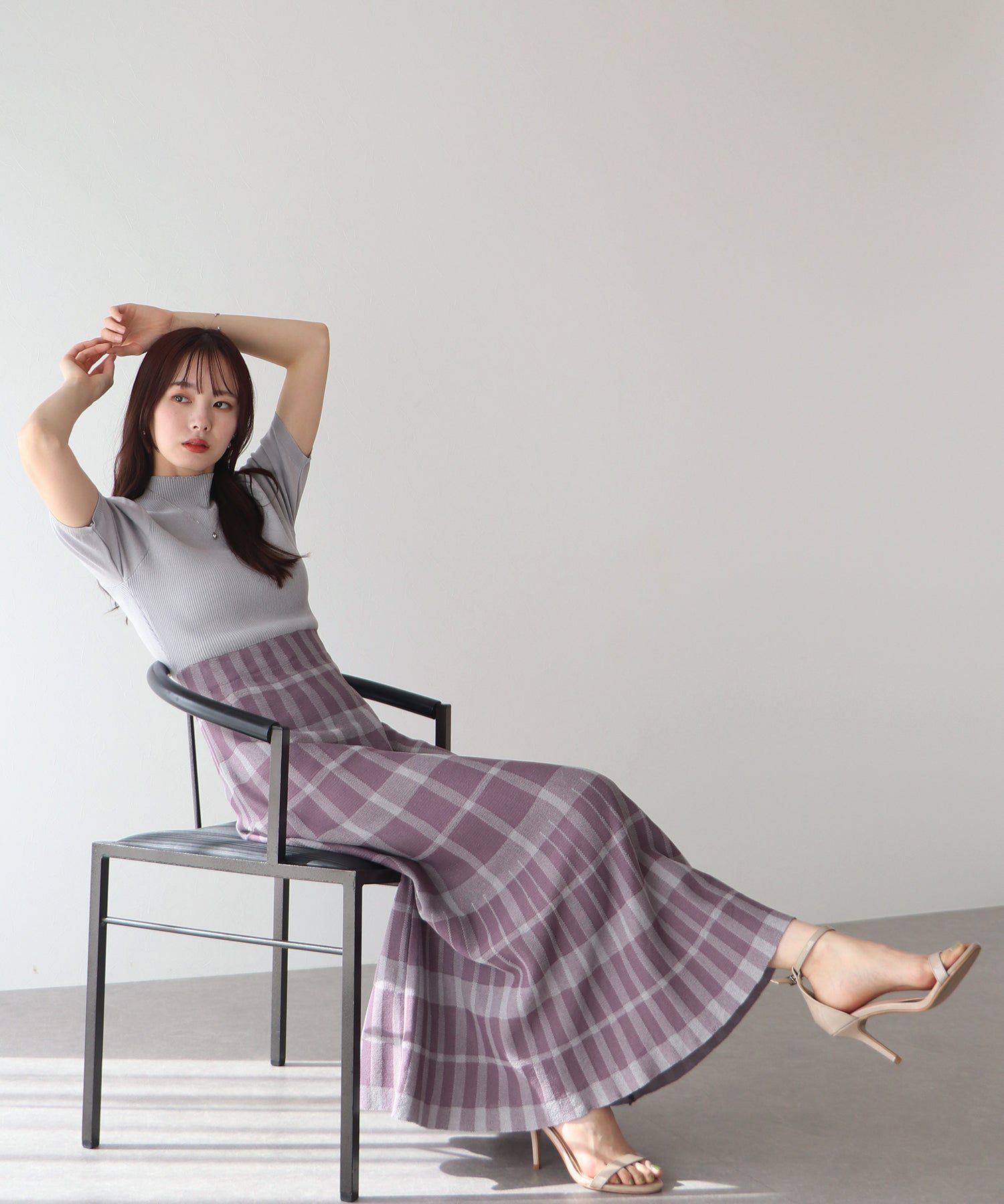 日本 BLUE EAST - 優雅高腰針織短袖洋裝-格紋-卡其