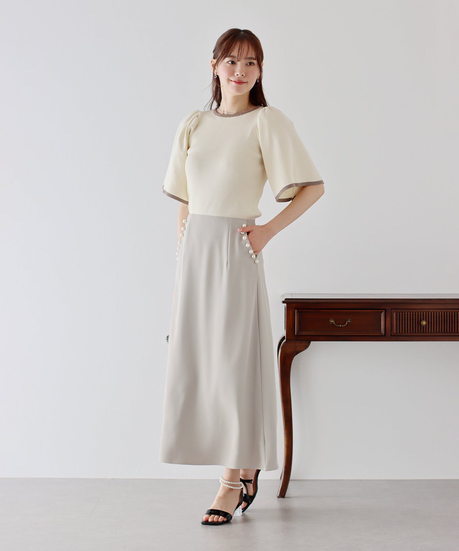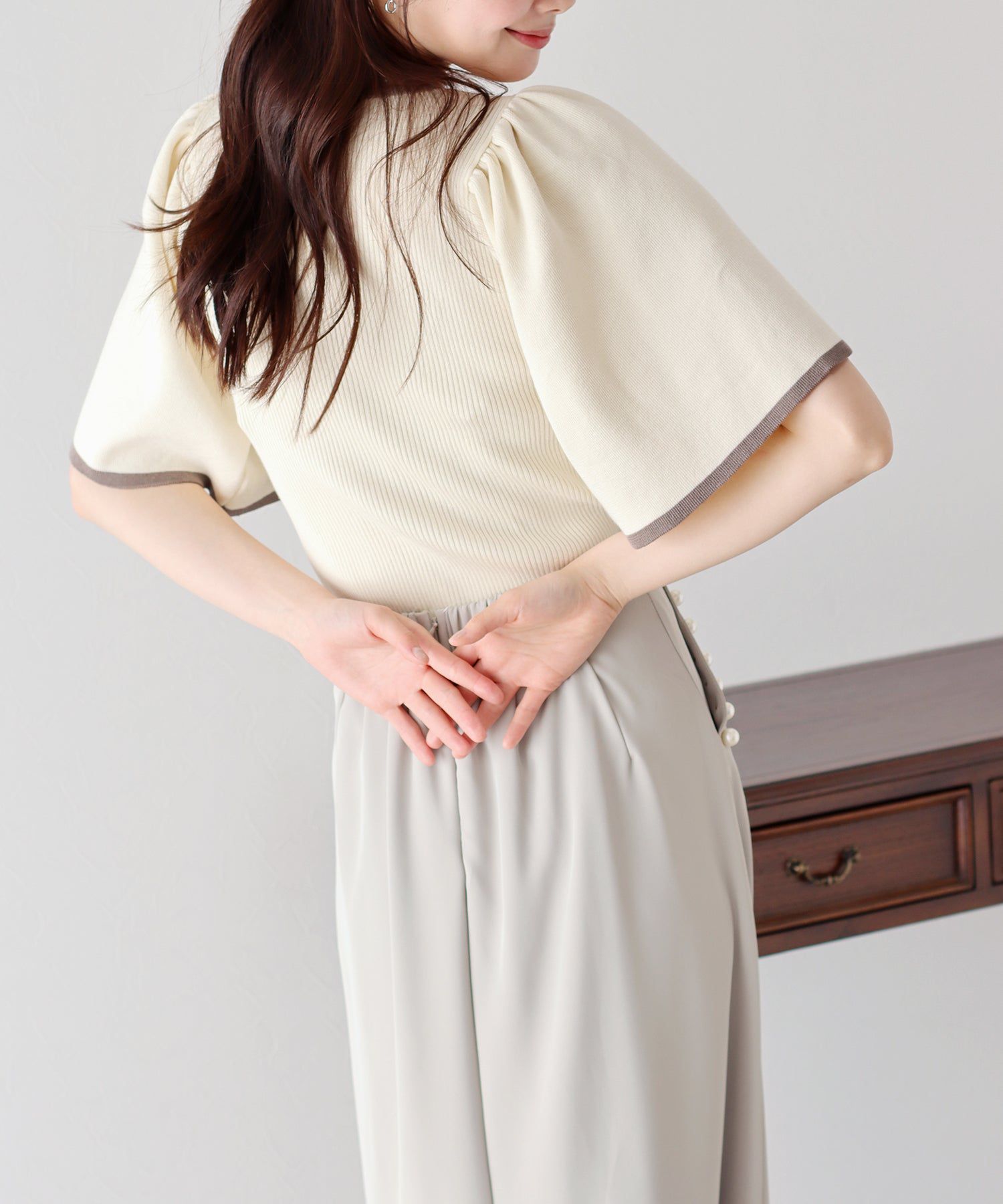 最讓編媽喜歡的就是腰圍這個蝴蝶結緞帶,緞帶的材質摸起來絲滑柔順,顯得非常高級呀~