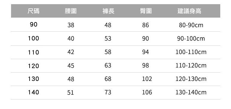 90cm、100cm、110cm、120cm、130cm、140cm
