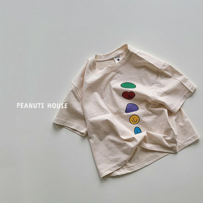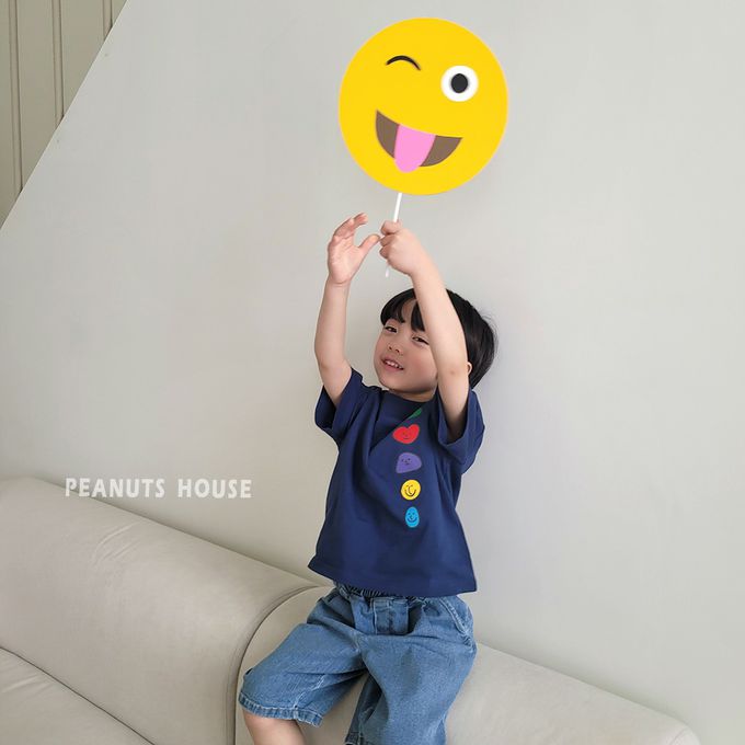 韓國 Peanuts House - 表情小石頭短袖上衣-海軍藍