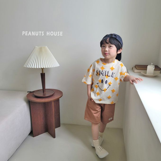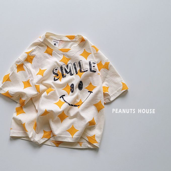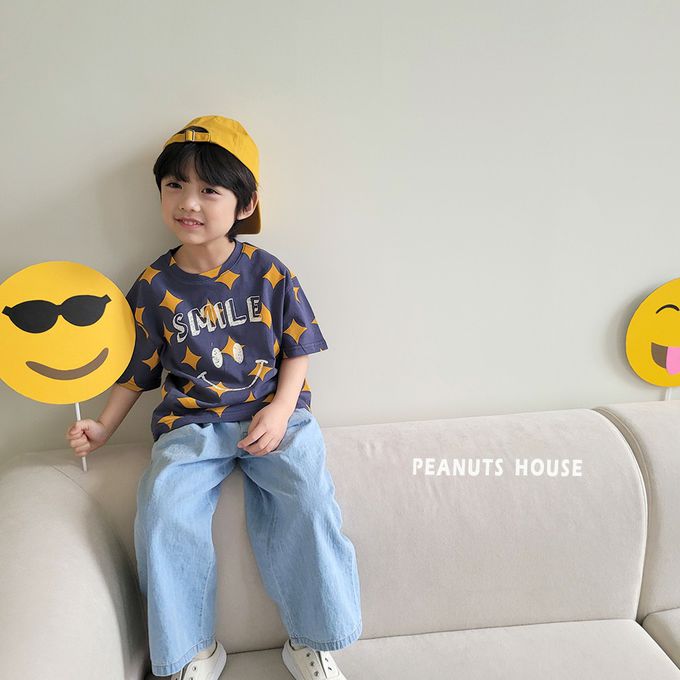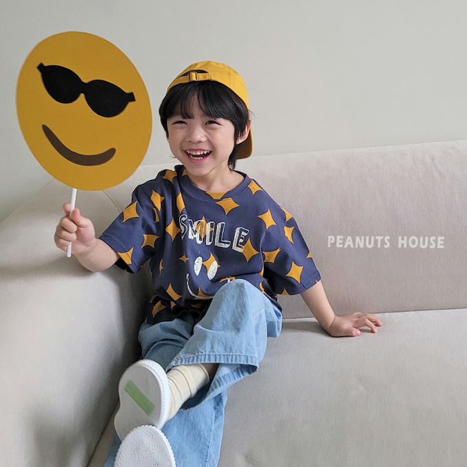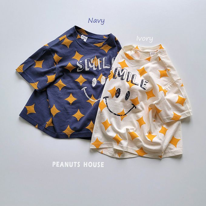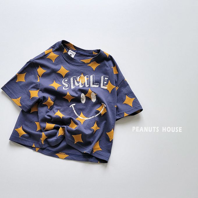 韓國 Peanuts House - 笑臉閃閃星印短袖上衣-海軍藍