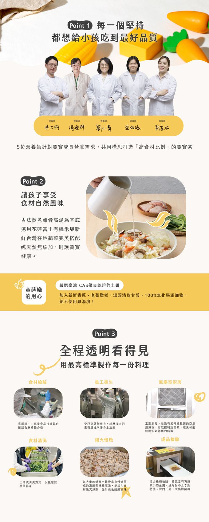 注意事項:剛開始接觸寶寶副食品的幼兒,家長需針對各食材微量讓幼兒測試過敏原,避免大量食用時,寶寶有較嚴重的過敏反應。