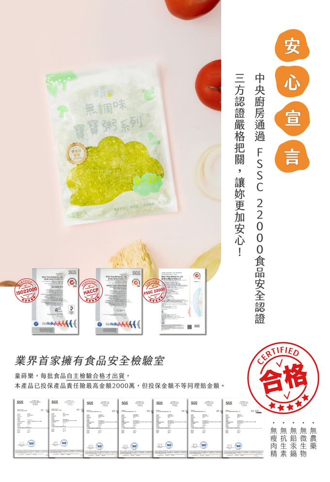 品名:嬰幼兒副食品(無調味寶寶粥)|羽衣甘藍菇菇雞粥(單包裝)