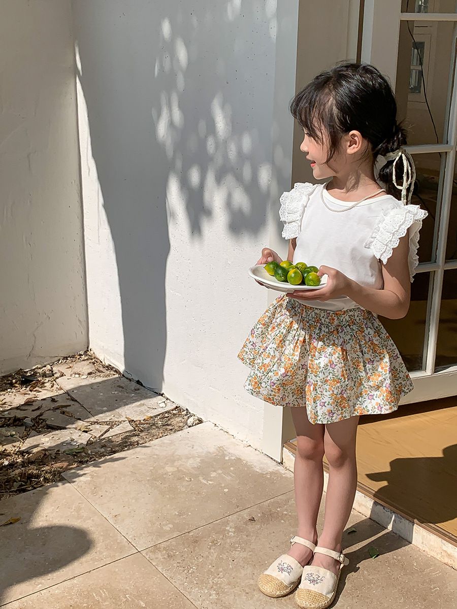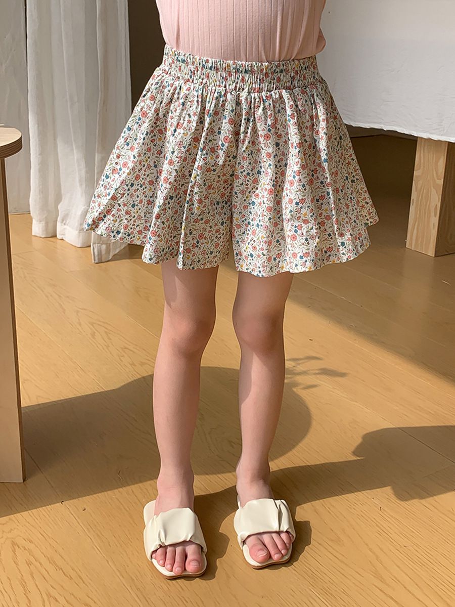 腰鬆緊小清新碎花短褲-橘子-杏色