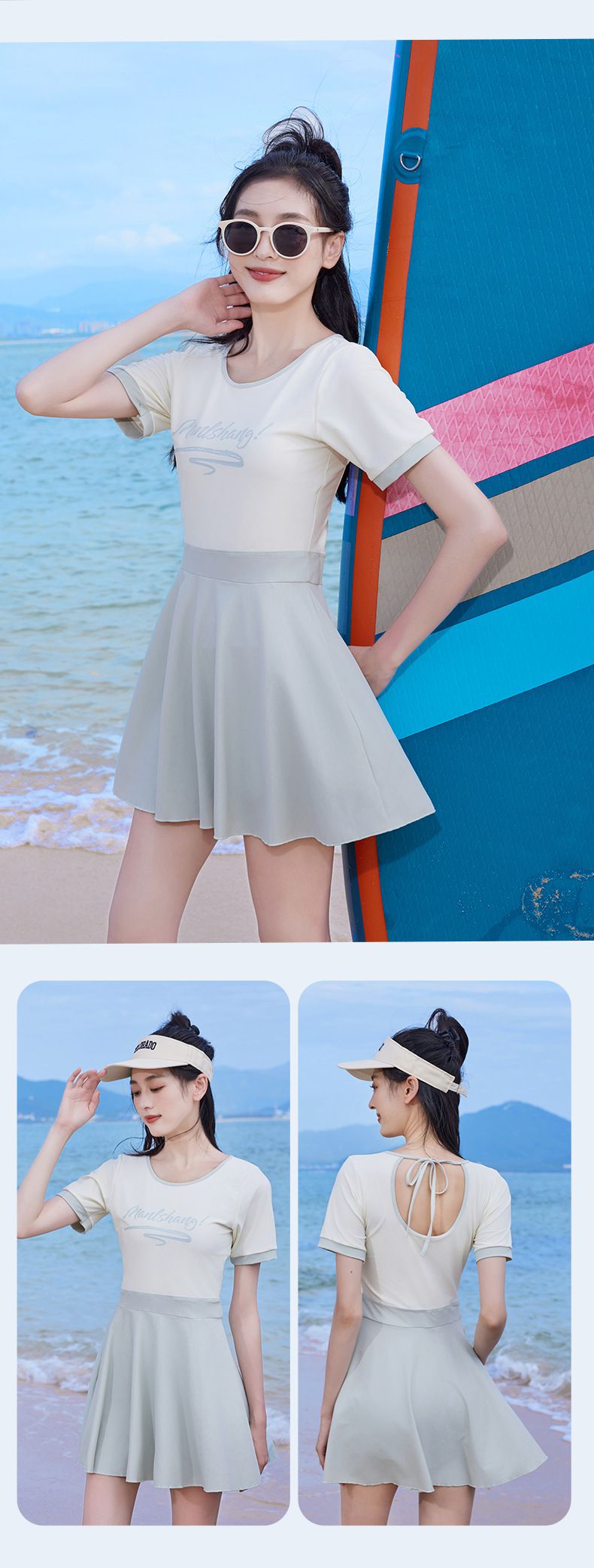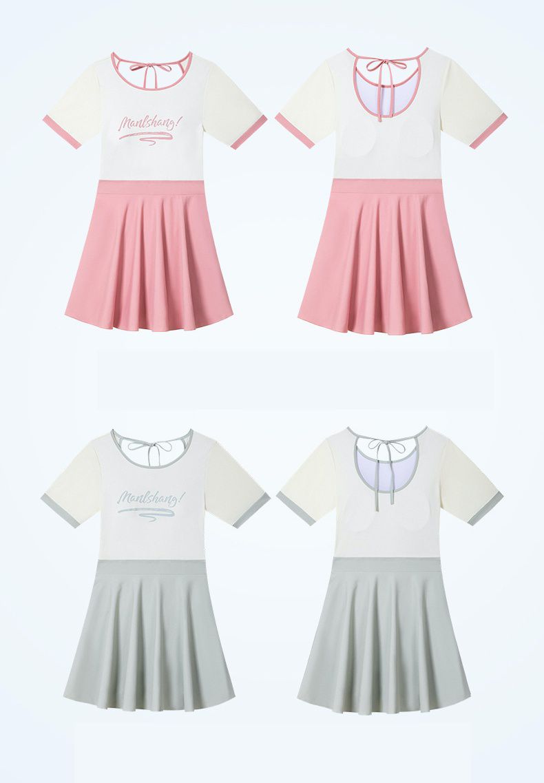百搭修身顯瘦遮肉高腰連身裙泳衣-淺灰色