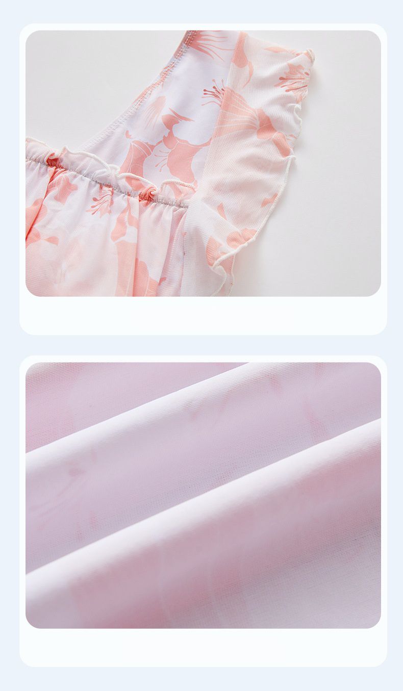 日系小清新顯瘦連身裙泳衣-浪漫碎花-粉色